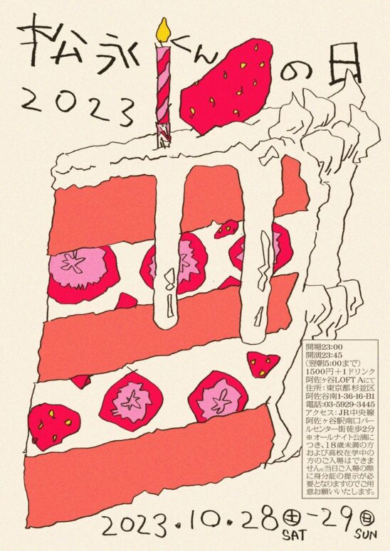 ※オールナイト公演につき、18歳未満の方、および高校在学中の方のご入場はできません。当日、ご入場の際に身分証(免許証、パスポート、マイナンバーカードなど公共機関が発行する証明書)の提示が必要となります。また、未成年者へのアルコールの販売も固くお断りします。予めご了承ください。