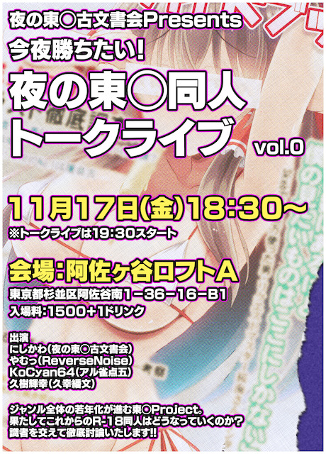 そんな東◯R-18同人誌について語り尽くすトークライブです。