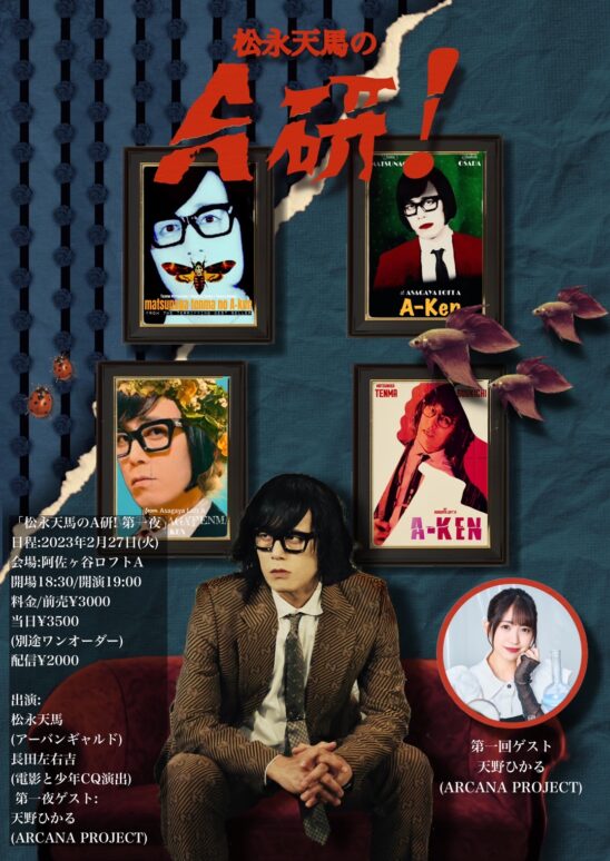 アーバンギャルド松永天馬と電影と少年CQ運営の長田左右吉が、毎回「現在上映中の映画」一作品を批評、更に同テーマの他作品をも深掘りするロフトAならではの映画サークル→A研を発足!