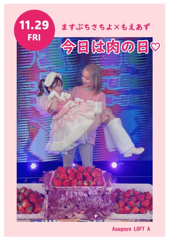 SCHEDULE 2024 11 29 Friday ますぶちさちよ×もえあず 11月29日「今日は肉の日♡」 OPEN 18:00 - START 19:00 Tweet 【出演】 ますぶちさちよ もえのあずき ますぶちさちよ×もえあずが、いい肉の日に食べまくり、飲みまくり、トークするイベント。 TICKET前売¥4,000 / 当日¥4,500(飲食代別・要1ドリンク) 10/31(木)20時より発売開始!! 購入→https://t.livepocket.jp/e/x0tk8 Share