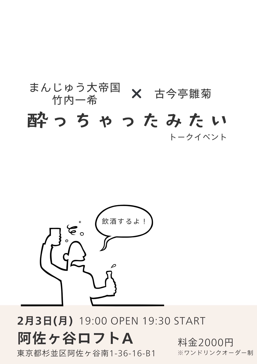お酒大好きな2人のトークライブ!たくさん飲んで食べて楽しみましょう!