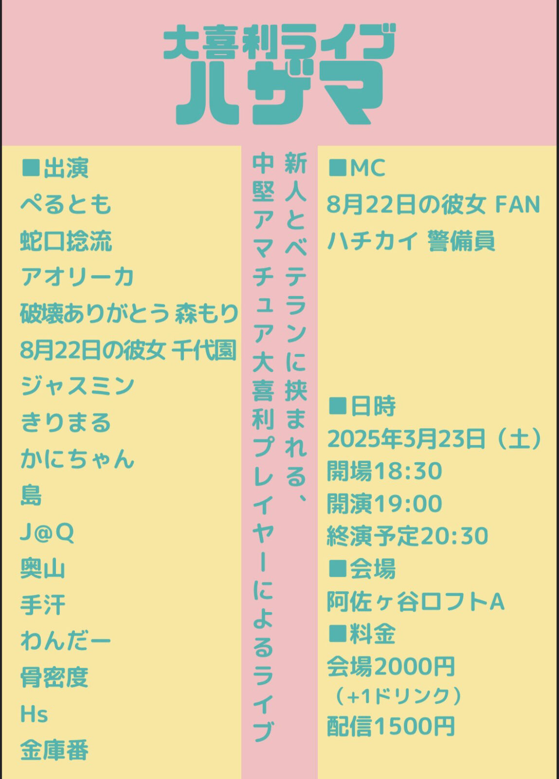 【会場観覧】予約/当日 ¥2,000(1オーダー¥500以上)