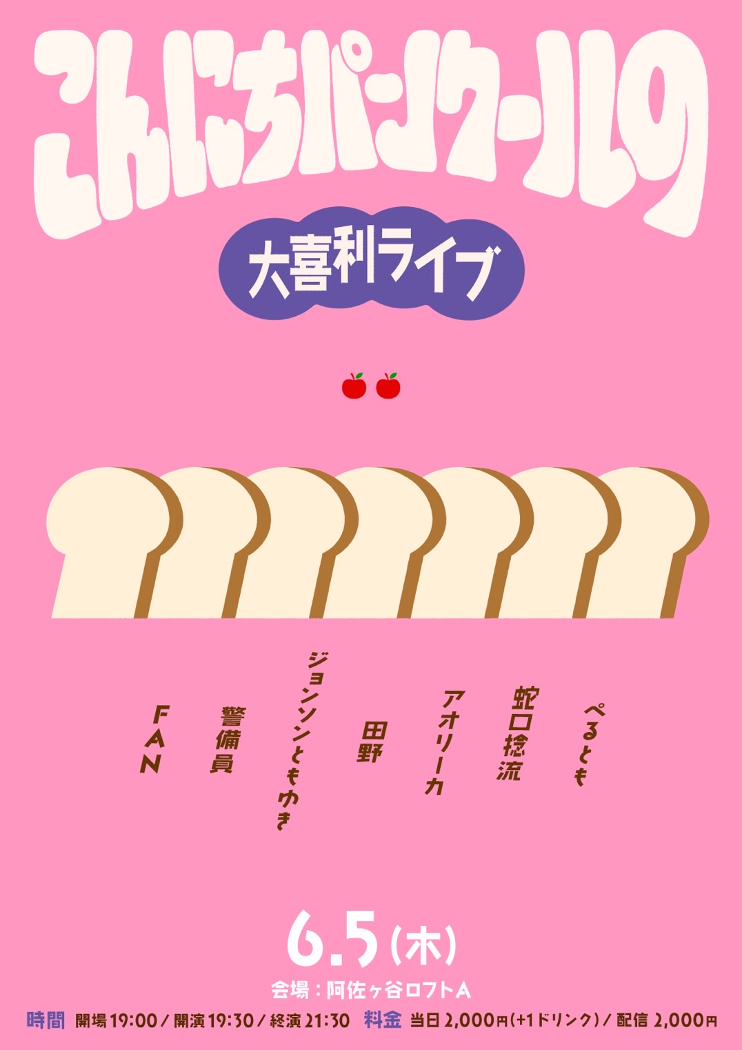 - OPEN 19:00 / START 19:30 / END 21:30予定