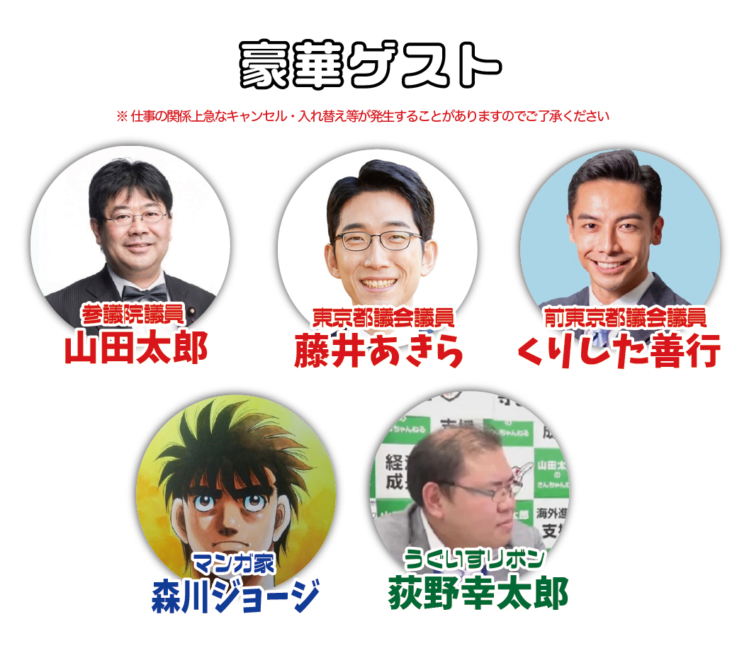 ※ 出演者は仕事の都合でキャンセル、入れ替わる可能性があることがあります。どうかご了承ください。