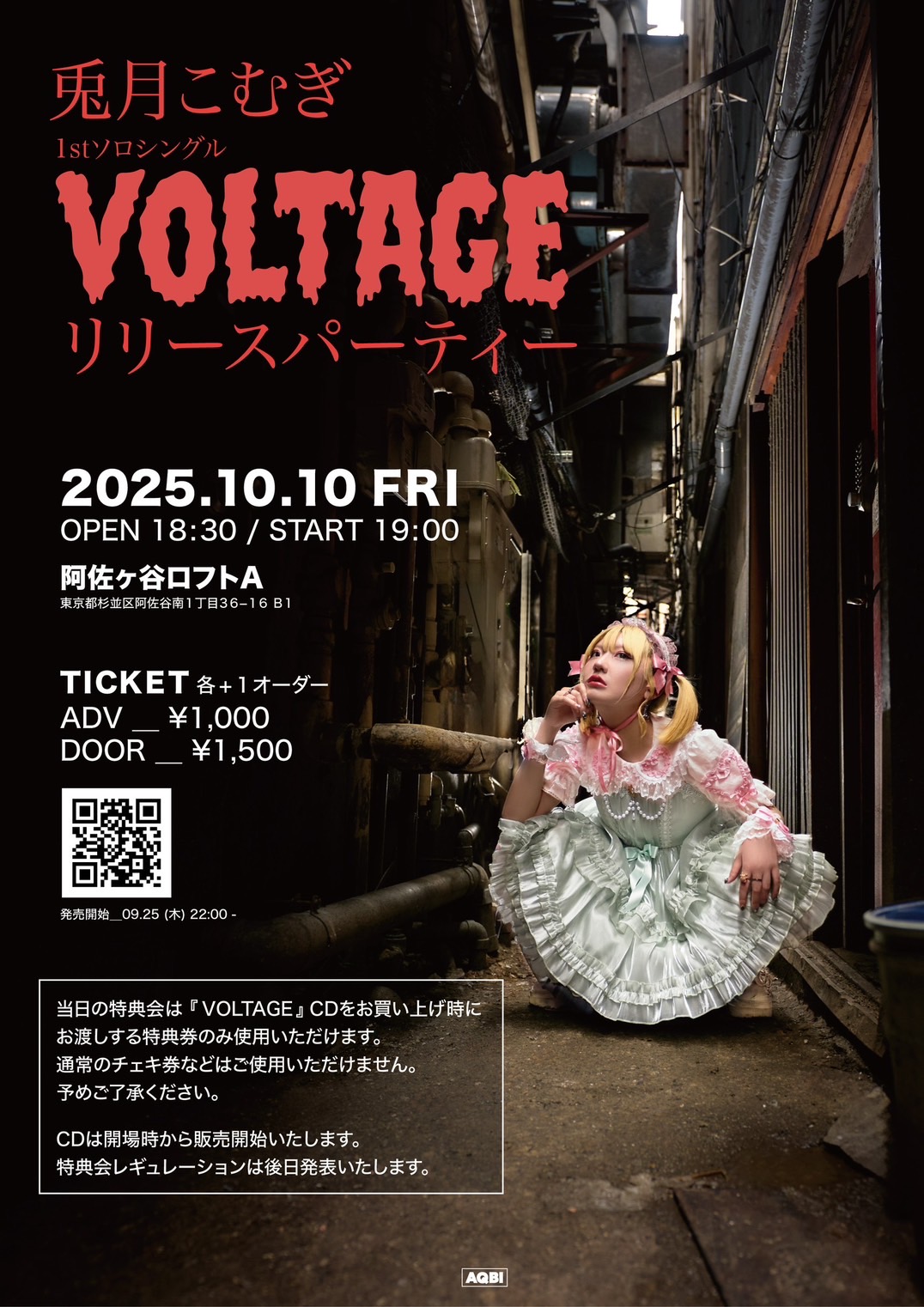 SCHEDULE 2025 10 10 Friday 兎月こむぎ『VOLTAGE』リリースパーティー OPEN 18:30 - START 19:00 Tweet 【出演】 兎月こむぎ 『VOLTAGE』発売を記念して、ソロ弾き語り&トークライブ!! TICKETOPEN 18:30 / START 19:00 チケットは9/25(木)22:00~発売開始!! 【会場観覧】前売 ¥1,000 / 当日¥1,500 ※ともに要1DRINK¥500以上。 購入はこちら→https://t.livepocket.jp/e/st5yy Share