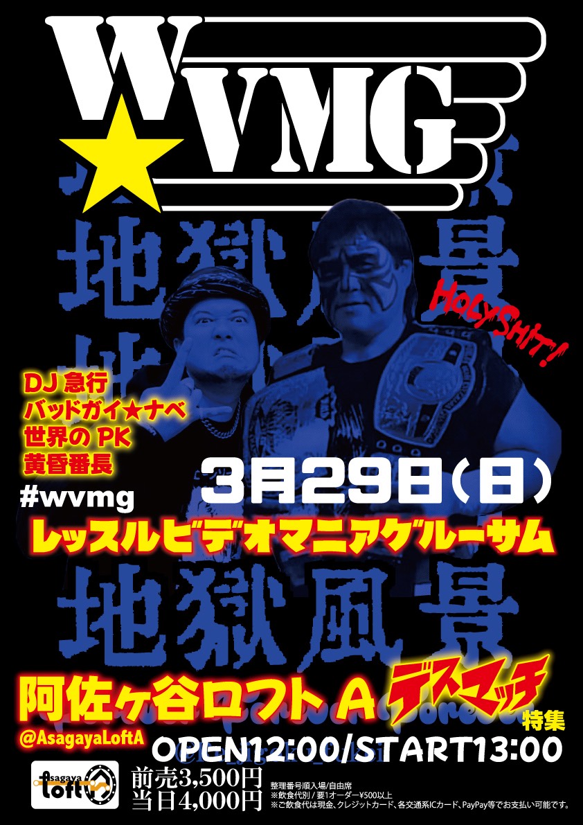 プロレス好きが集まってメジャーインディー男子女子ミゼット学生国内海外着ぐるみ関係なく秘蔵プロレス映像を元にボーダレスに紹介しあう「レッスルビデオマニアグルーサム」。