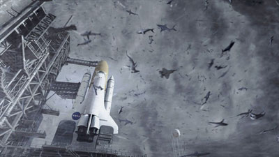 海で台風に巻き上げられたサメの大群が空を舞い、そして降り、人を襲う!!