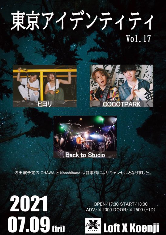 ※出演予定のCHAWAとkiboshibandは諸事情によりキャンセルとなりました。