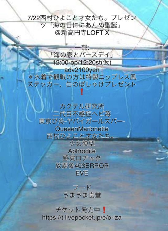 7/22西村ひよこと才女たち。プレゼンツ「海の日ににあんぬ聖誕」