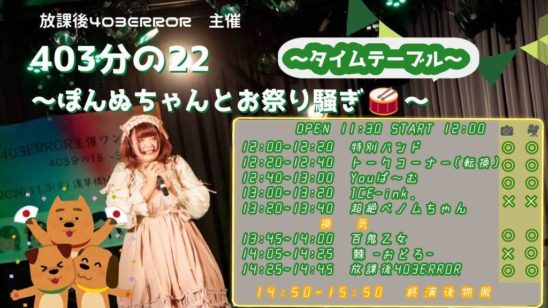 出演者:ICE-ink./棘-おどろ-/超絶ベノムちゃん/百鬼乙女/Youぱ〜む/放課後403ERROR