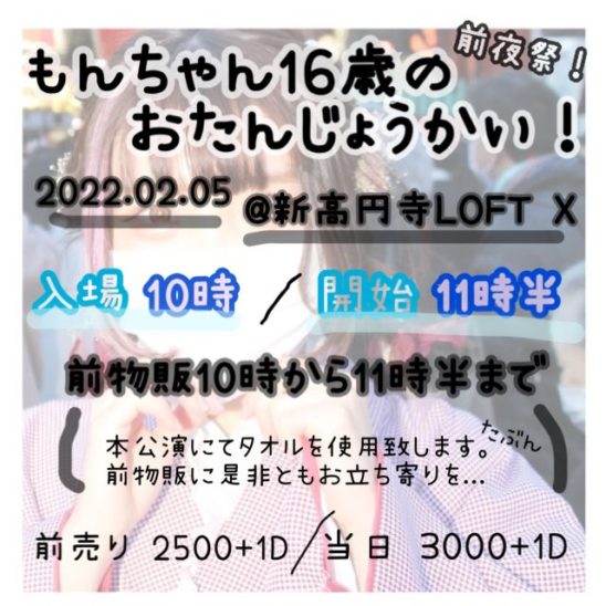 もんちゃん16歳のおたんじょうかい!前夜祭