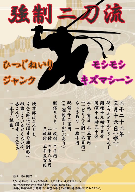 漫才師にはコントを、コントしには漫才をそれぞれ強制的に披露してもらうライブ。