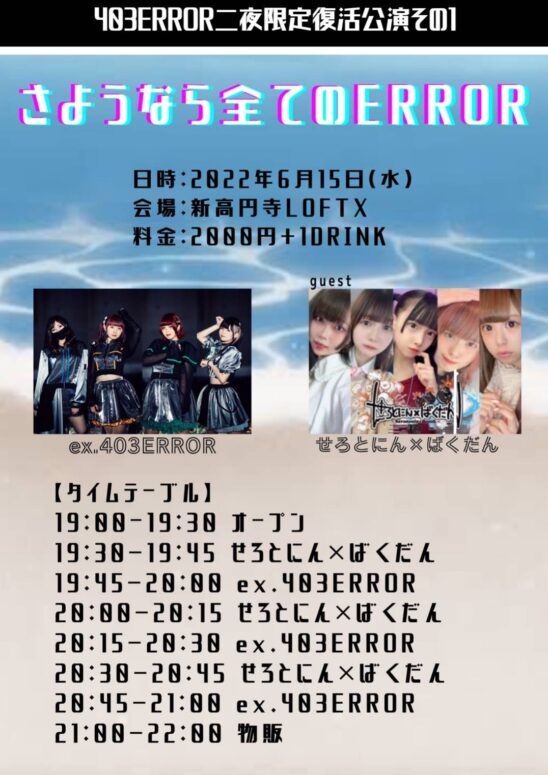 403ERROR二夜限定復活公演その1 “さようなら全てのERROR”