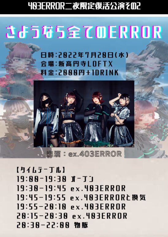 2022年7月20日(水) 会場:新高円寺LOFTX OPEN19:00 START19:30 (予定) 料金:2000円+1DRINK