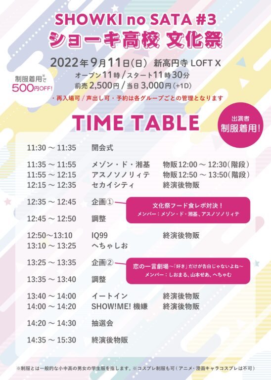 SHOW!ME!機嫌 pre. SHOWKI no SATA #3 ~ショーキ高校 文化祭~