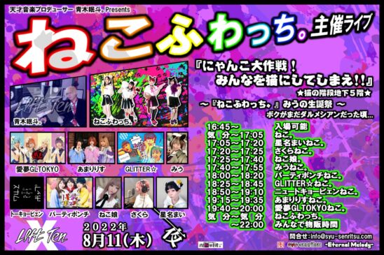 青木眠斗。Presents 『ねこふわっち。』主催ライブ
