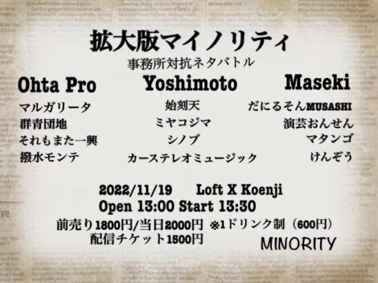 「拡大版”マイノリティ” 事務所対抗ネタバトル!」