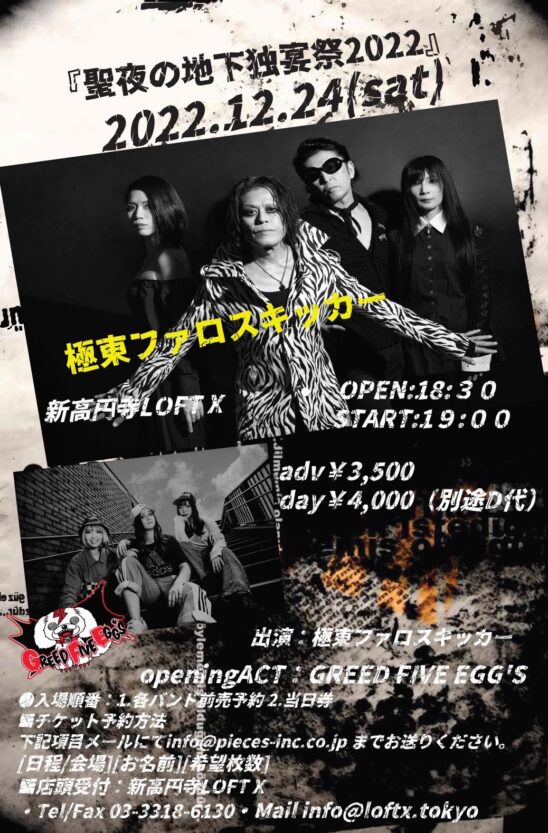 ※日付、会場、バンド名、氏名、電話番号、枚数記入の上お送りください。