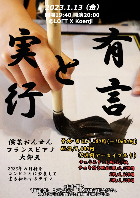 2023年の抱負と目標などを自由にトークしてもらう真面目ライブ。終盤にはコンビごとにその目標を書き初めしていただきます。