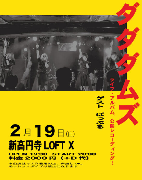 ダダダムズ1stライブ・アルバム、公開レコーディング!