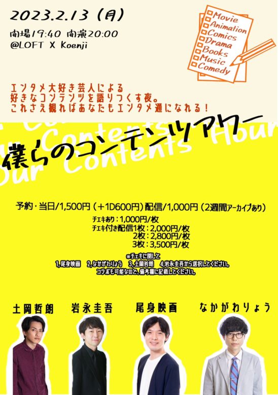 エンタメ好き芸人によるエンタメ好きのためのトークライブ。
