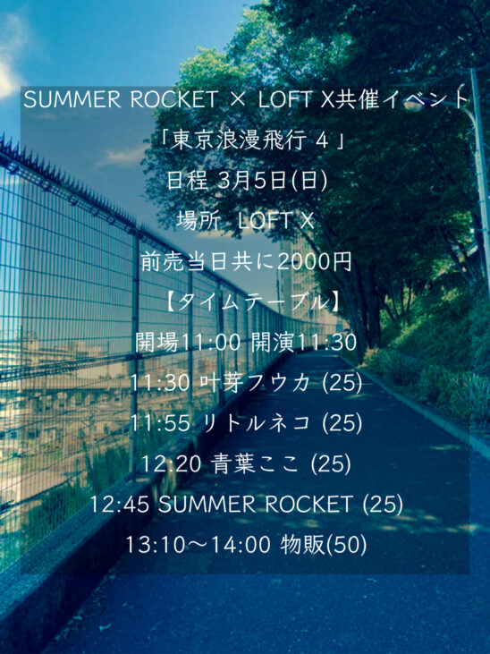 SUMMER ROCKET × LOFT X共催イベント 「東京浪漫飛行 4」
