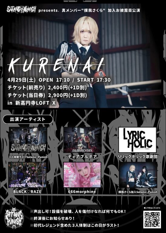 Satanic Punish 真メンバー”撲我さくら”加入お披露目公演 “紅-KURENAI-“