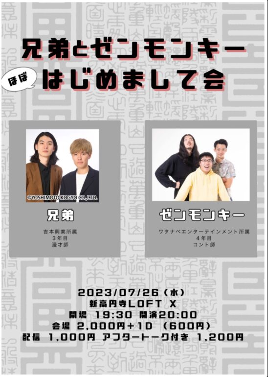 事務所も芸歴もネタスタイルも違う、(ほぼ)はじめましてな2組が繰り広げるネタ&企画ライブ!