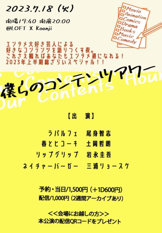 エンタメ大好き芸人たちによる好きなコンテンツを語り尽くす90分。