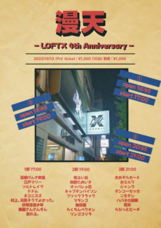 新高円寺LOFT Xの4周年を記念して開催する豪華お笑いライブ”漫天”