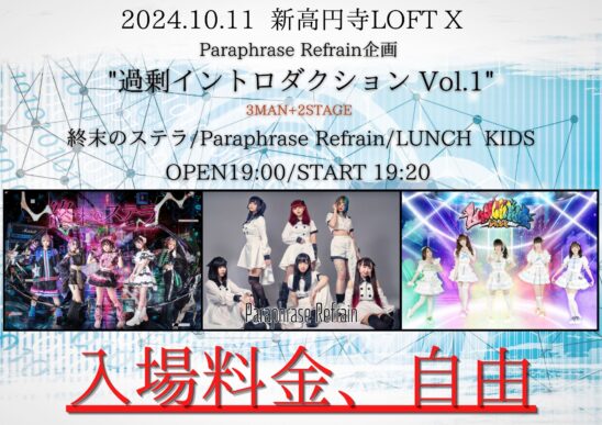 Paraphrase Refrain連続主催企画 過剰イントロダクションVol.1 ー3MAN and 2STAGEー