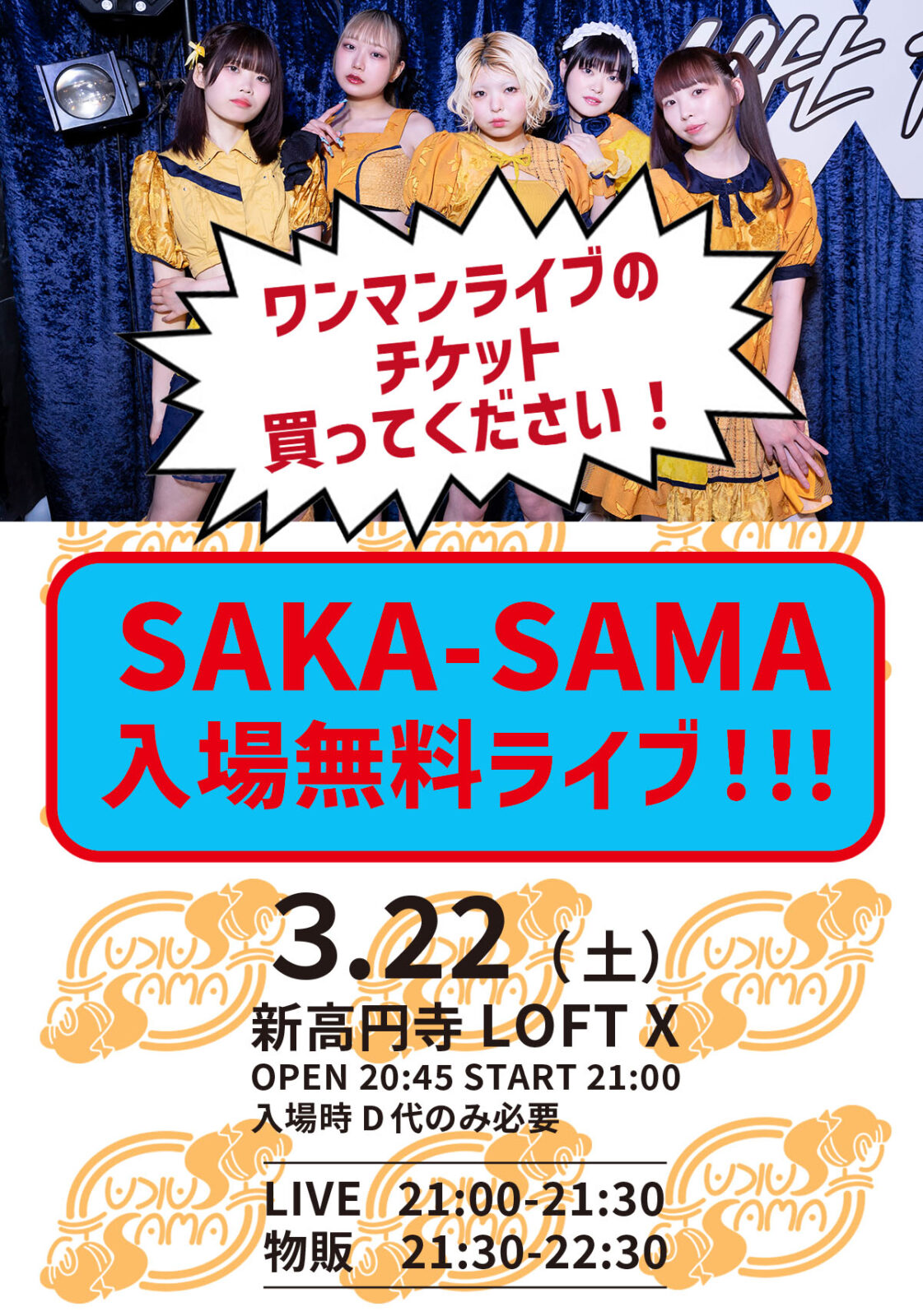 SAKA-SAMA ワンマンライブ・チケット買ってください! 入場無料ライブ!!