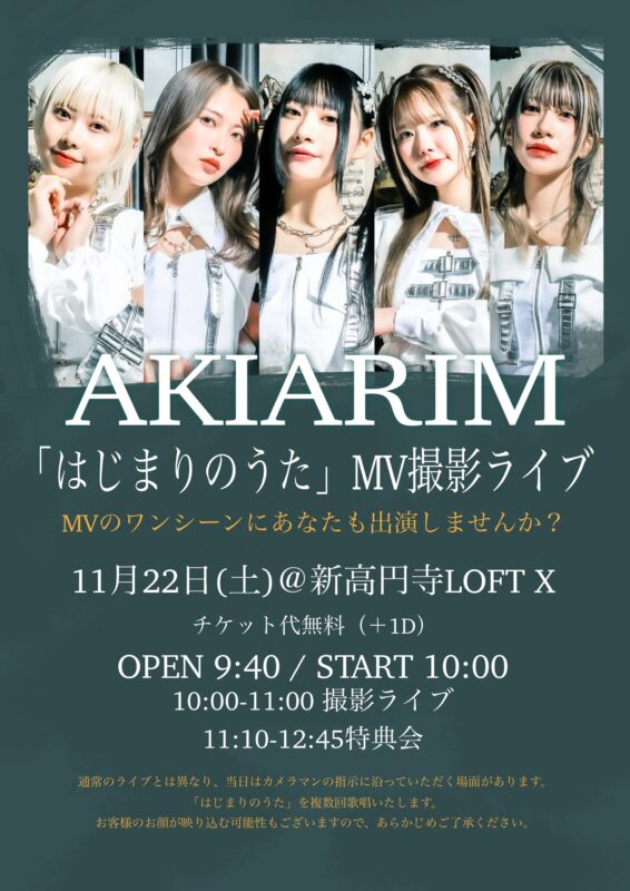 AKIARIM「はじまりのうた」MV撮影ライブ