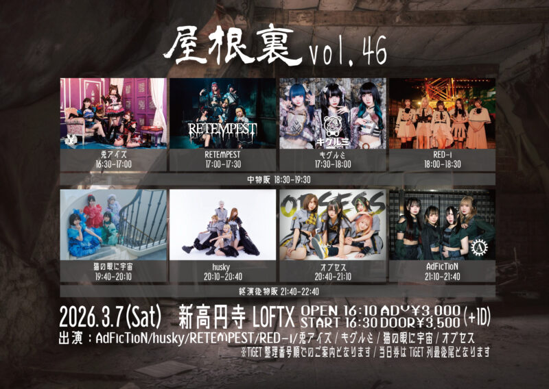 3/20(金祝) OPEN 16:15 / START 16:30 |