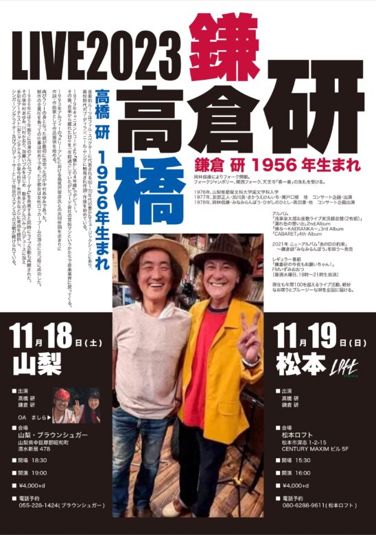 1978年、岡林信康・みなみらんぼう・ひがしのひとし・高田渡・他 コンサート企画出演