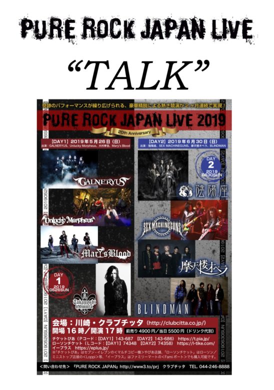 今年5〜6月に2ヶ月連続で行われる『PURE ROCK JAPAN LIVE2019』の【DAY1】と【DAY2】を楽しく振り返るのはもちろん、