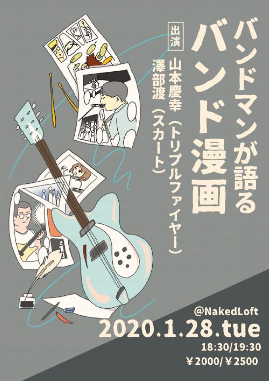 SCHEDULE 2020 01 28 Tuesday バンドマンが語るバンド漫画 OPEN 18:30 - START 19:30 Tweet 【出演】 山本慶幸(トリプルファイヤー) 澤部渡(スカート) バンドをやっていたらバンドが出てくる漫画が気になりはじめた。 集め続けて500冊近くのバンド漫画コレクションを誇るトリプルファイヤーのベース山本が、漫画好きのミュージシャンであるスカート・澤部にバンド漫画の話をします。 TICKET前売¥2000 / 当日¥2500(要1オーダー¥500以上) ※e +にて12/21(土)12時より発売開始! Share