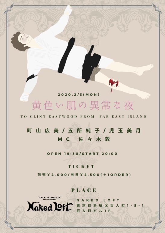 『15時17分、パリ行き』の男たちとは異なり、自分の正しさを証明するために”SABAGE(蛮族)”を設定する必要もなく、ヒーローになる必要もなしにプライドを保つ方法をすでに知っている三人の女性の論客、即ち町山広美さん/五所純子さん/児玉美月さんに、ハーレムになんてそもそも憧れてない、ニッポンの知性・佐々木敦さんをMCに迎え、極東の島国より”父なるアメリカ”クリント・イーストウッドを睨み返す宴「黄色い肌の異常な夜」が始まる。ここから始める。
