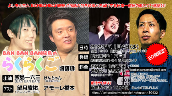 よしもと芸人 BANBANBAN鮫島が落語大好き仲間とお届けする