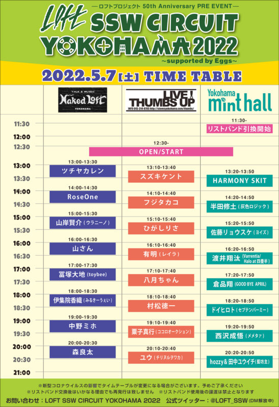 スズキケント/冨塚大地(toybee)/半田 修土 (灰色ロジック)/hozzy&田中ユウイチ(藍坊主)/Rose One/山岸賢介(ウラニーノ)/渡井翔汰(Varrentia/Halo at 四畳半)