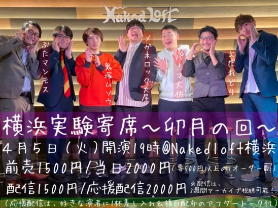 新天地にて右も左もわからない中「実験劇場」としての初心に立ち返るべく、ネイキッドロフトなりの寄席に挑戦します。サブカルチャーが根付かないと言われてる横浜で、果たしてイベントとして成立させる事ができるのか!?