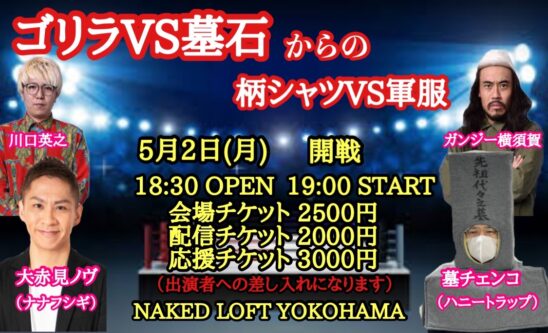 後半は柄シャツVS軍服の怪談対決を大赤見ノヴが見守ります!
