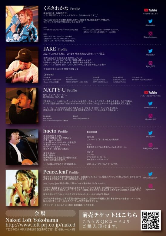正直、この日に5組も『鳥取』に縁のあるアーティストが『横浜』に集まるのは『奇跡』に近いと思ってます。