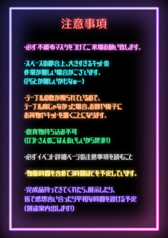 ※会場内で大声を出すことや、来場者同士での接触などの行為は禁 止です。
