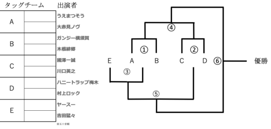タッグは即興にて昼の部にてくじ引きにより決定!「今日その場限りの即興タッグ!!」