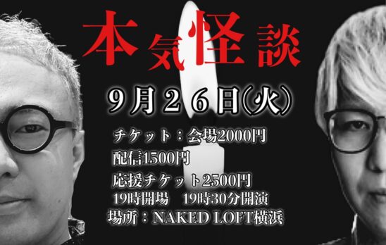 全国に足を運び怪談を収集する歩くお墓ことハニートラップ梅木と心霊スポットの空気や怪談を収集している川口英之が本気の怪談会を開催。