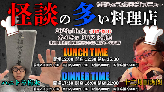 ハニトラ梅木と十二月田護朗の料理と怪談とトークを楽しむツーマンショー! <飛び込み怪談大歓迎!>※会場来場者には配信アーカイブ視聴権(2週間)付き!