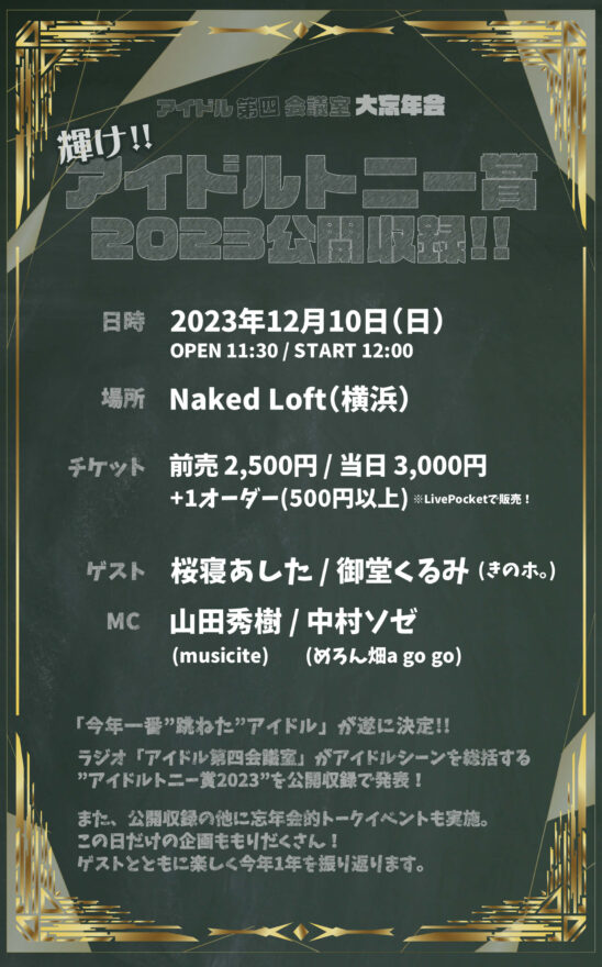 また、公開収録の他に忘年会的トークイベントも実施。