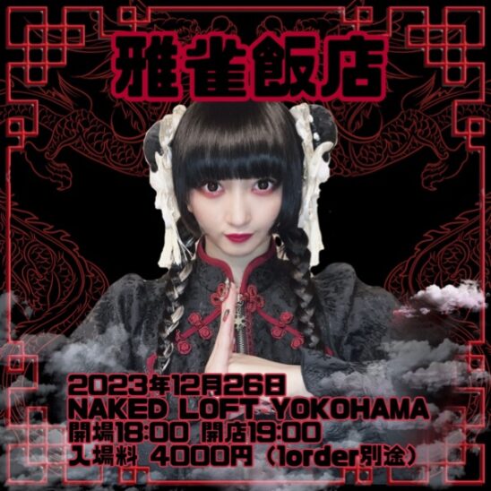 SCHEDULE 2023 12 26 Tuesday 雅雀飯店 OPEN 18:00 - START 19:00 Tweet 【出演】 雅雀り子 TICKET《会場チケット》 ●前売りチケット¥4,000(税込) ※共に飲食代別/要1オーダー¥600以上 ※お客様都合によるチケットキャンセルは受け付けておりません ※チケットはLivepocketにて12/10(日)17時より販売開始! ▼購入はこちらから Share