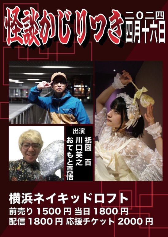 川口英之とおてもと慎吾祇園百による怪談をひたすら語るライブです。